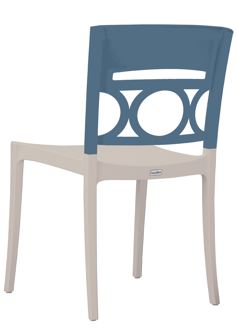 Polypropylene seat reinforced with fibreglass.